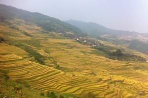 龙胜县龙胜梯田群规模宏大,全部的梯田分布在海拔300-1100米之间,最大坡度达50度,一层层从山脚盘绕到山顶,层层叠叠,高低错落。其线条行云流水,其规模磅礴壮观。是桂林旅游的一个重要组成部分。
